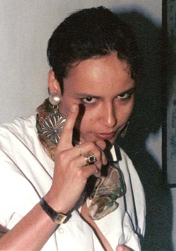 Nadieh joking at a camping weekend, august 1990, photographer Hugo