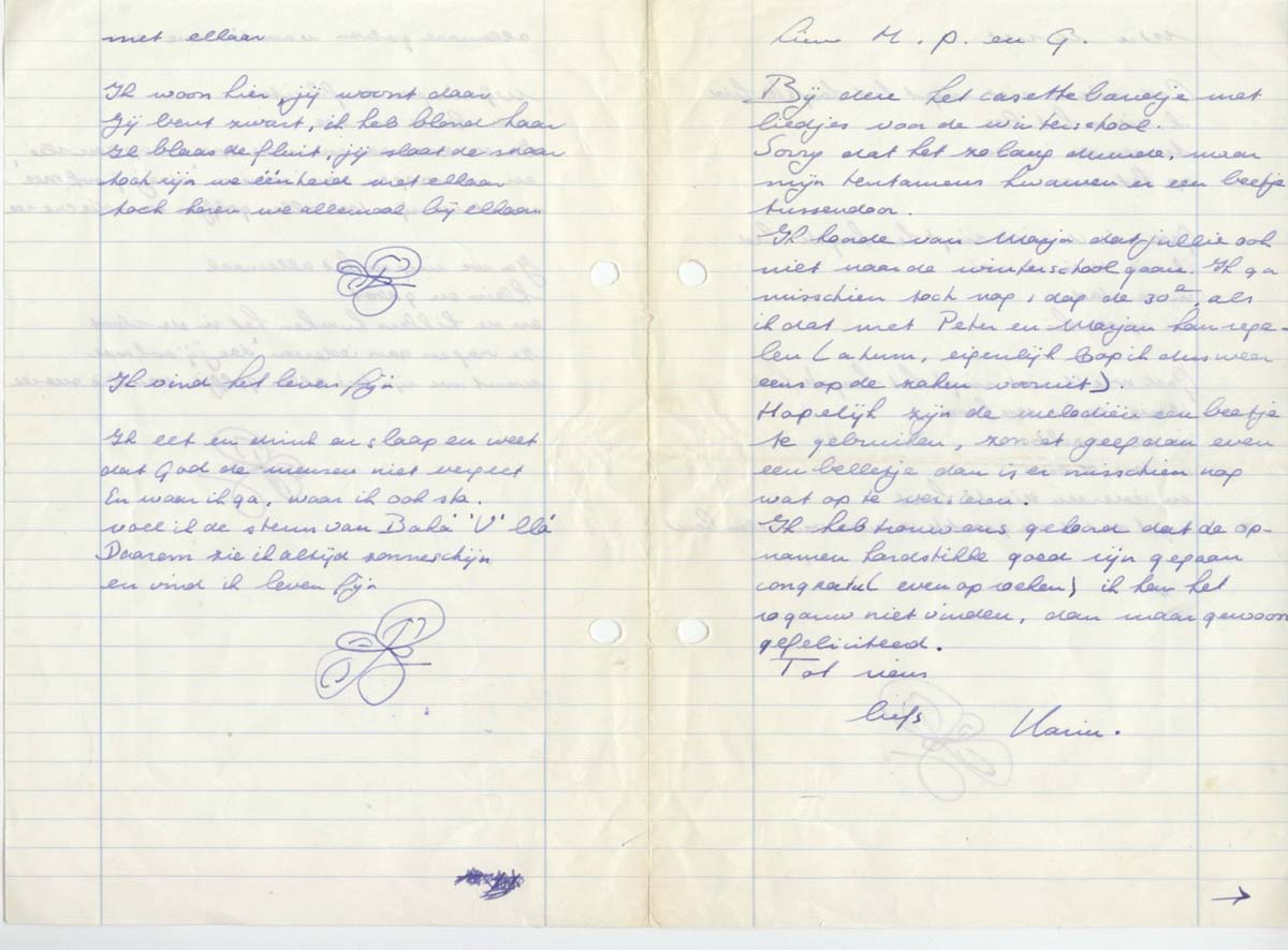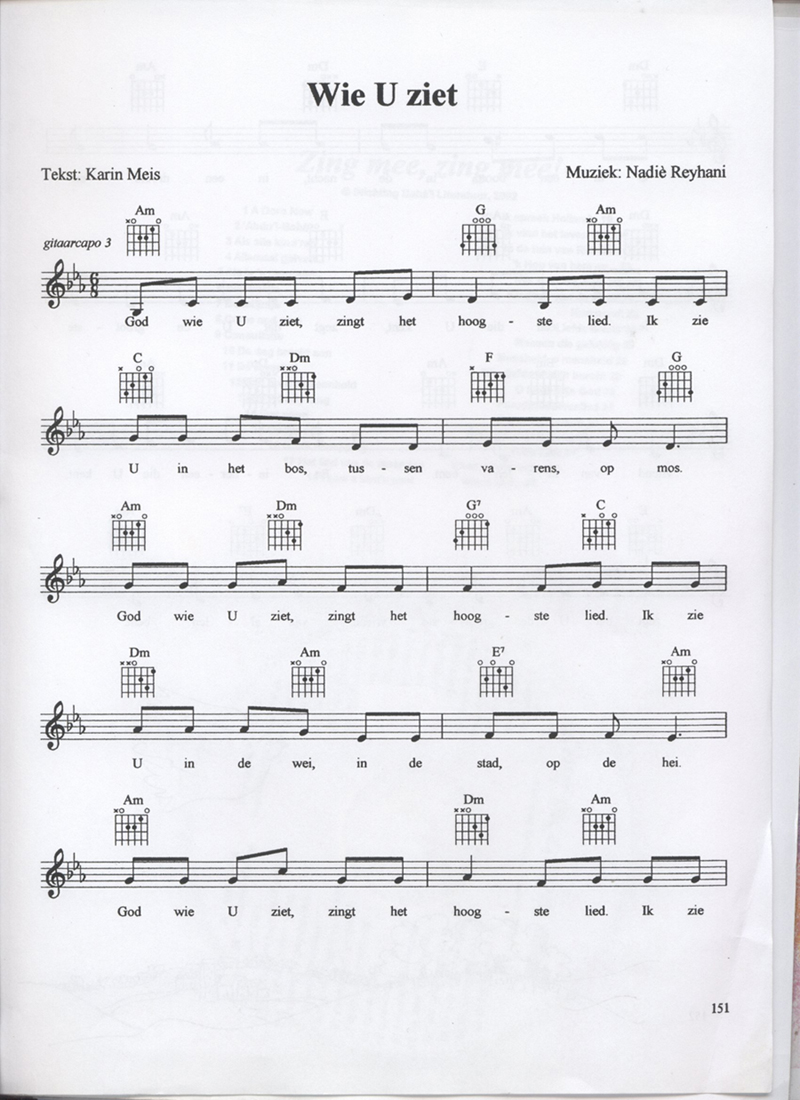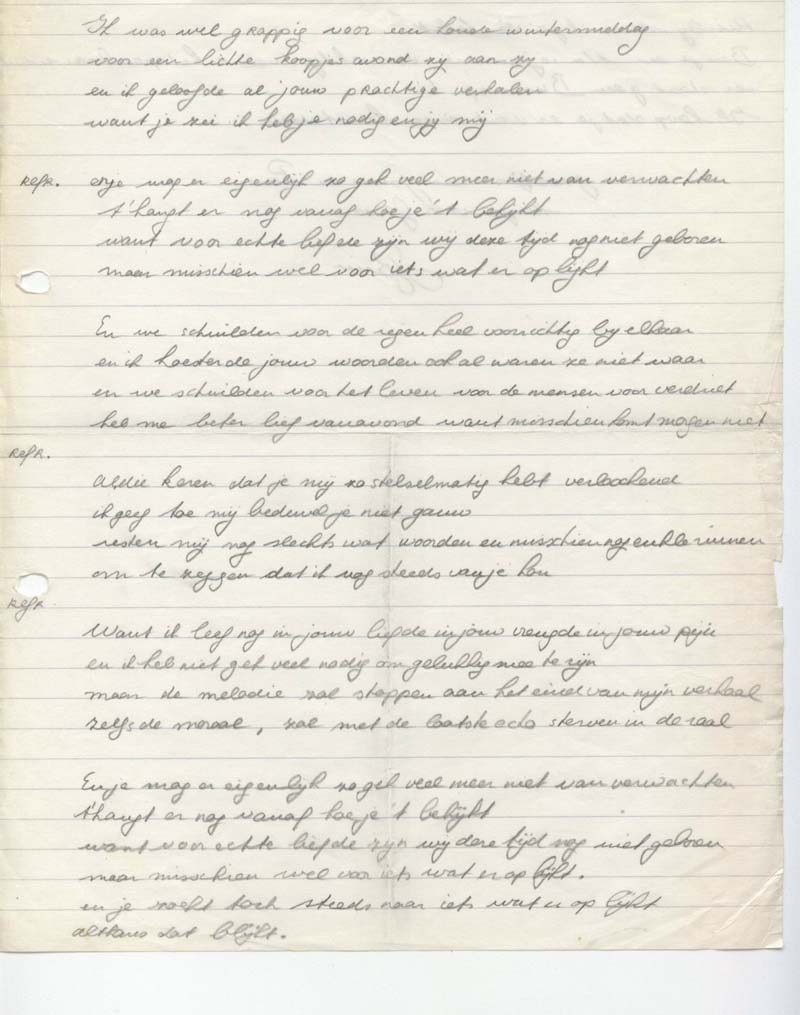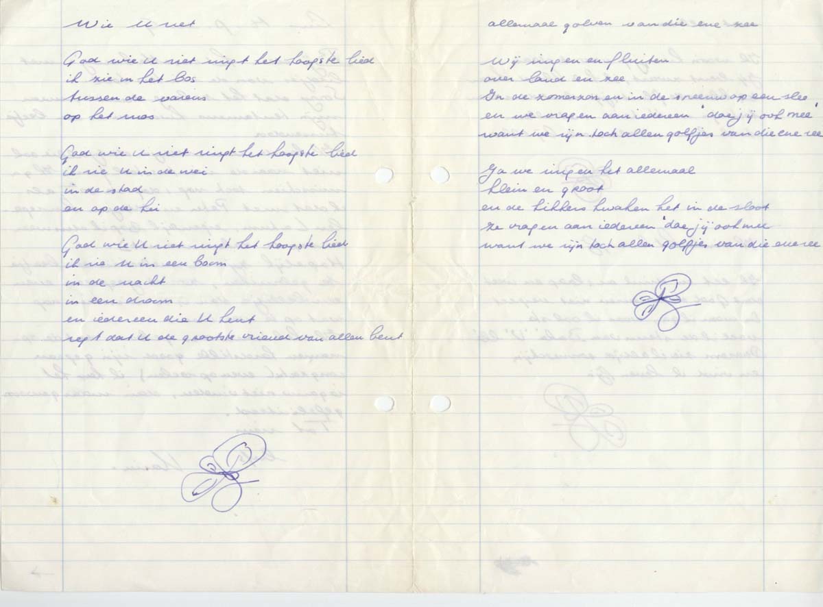 These notes and songs and children's songs were given to us by Hugo van Bolhuis who was together with Marja de Jong part of the singing group